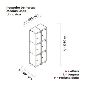 Armário Roupeiro de Aço totalmente montável, dispensa a utilização de parafusos, estrutura em chapas #24 e #26 (0,60mm e 0,45mm) conta com uma porta com estampos circulares em formação triangular para ventilação, sistema de fechamento de varão de 3 pontos, através de pitão para cadeado.