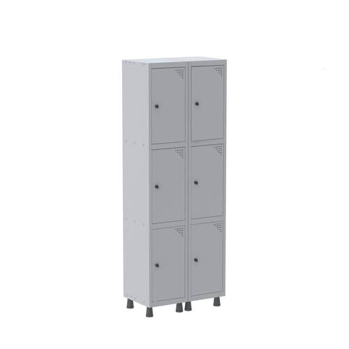 Armário Roupeiro de Aço totalmente montável, dispensa a utilização de parafusos, estrutura em chapas #24 e #26 (0,60mm e 0,45mm) conta com uma porta com estampos circulares em formação triangular para ventilação, sistema de fechamento de varão de 3 pontos, através de pitão para cadeado. Acabamento da Porta: Pintura Ambiente Principal: Banheiro Complexidade da Montagem: Média: pode ser montado por mais de uma pessoa e/ou necessite de maior conhecimento para montagem Cor: Cinza Cor do Produto: Cinza Cor Interna: Cinza Escala de Brilho: Semi-Fosco Escala de Brilho da Porta: Semi-Fosco Itens Inclusos: 1 Armário, Kit Ferragens e Manual de Montagem Manual de Montagem e Instalação: https://cdn2.madeiramadeira.com.br/prd/pandin/689554-view-usp-sharing.view%3Fusp%3Dsharing Material da Porta: Aço Material dos Pés: Polipropileno Material Principal: Aço Necessita Montagem: Sim Origem do Produto: Nacional Pés Reguláveis: Sim Peso: 28.99 Possui Espelho: Não Possui Pés: 08 Possui Portas: 06 Possui Prateleiras: Não Recomendações de Uso, Manutenção e Limpeza: Utilizar um pano levemente umedecido com água, para finalizar utilizar um pano seco. Sapatas Niveladoras: Não Sistema de Montagem: Encaixe Suporta Até (kg): 15 Tipo de Dobradiça/Corrediça da Porta: Aço Tipo de Puxador da Porta: Embutido