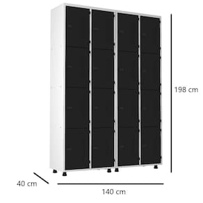 O Armário Roupeiro de Aço 16 Portas Vestiário Academia Guarda-Volumes com trinco para cadeados é perfeito para alojamentos, escritórios, almoxarifados, laboratórios, hospitais, farmácias, depósitos, academias, supermercados, vestiários, e diversos outros ambientes.