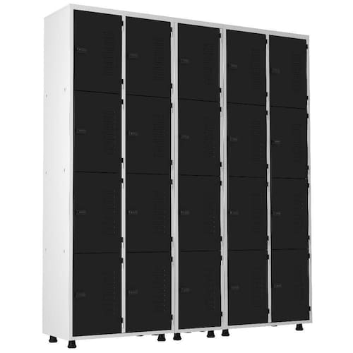 O Armário Roupeiro de Aço 20 Portas Vestiário Academia Guarda-Volumes com trinco para cadeados é perfeito para alojamentos, escritórios, almoxarifados, laboratórios, hospitais, farmácias, depósitos, academias, supermercados, vestiários, e diversos outros ambientes.