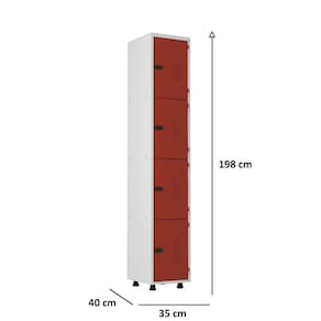 O Armário Roupeiro de Aço 4 Portas Vestiário Academia Guarda-Volumes com trinco para cadeados é perfeito para alojamentos, escritórios, almoxarifados, laboratórios, hospitais, farmácias, depósitos, academias, supermercados, vestiários, e diversos outros ambientes.