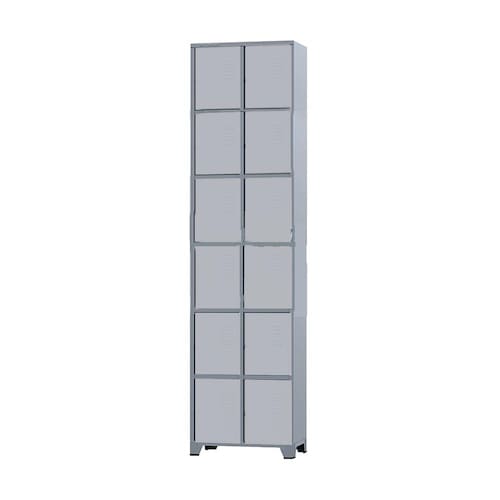Armário Roupeiro de aço para vestiário,ideal para academias, surpermercados, empresa e para uso geral. Produzido em aço chapa 26 0,45mm de alta qualidade com tratamento anti-ferruginoso, o acabamento em sistema de pintura eletrostática a alta temperatura epóxi, tambem garante maior durabilidade da cor e resistencia a ferrugem. Possui 12 portas com venezianas para ventilação, compartimentos de tamanhos médios independentes sem divisórias internas, que garante que você consiga armazenar itens como bolsas, mochilas e entre outros. O fechamento das portas é através de pitão para cadeado.