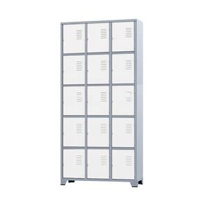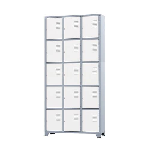 CONEXÃO MOVEISArmário Roupeiro de aço para vestiário,ideal para academias, surpermercados, empresa e para uso geral. Produzido em aço chapa 26 0,45mm de alta qualidade com tratamento anti-ferruginoso, o acabamento em sistema de pintura eletrostática a alta temperatura epóxi, tambem garante maior durabilidade da cor e resistencia a ferrugem. Possui 15 portas com venezianas para ventilação, compartimentos de tamanhos médios independentes sem divisórias internas, que garante que você consiga armazenar itens como bolsas, mochilas e entre outros. O fechamento das portas é através de CHAVE. Características- Quantidade de Portas: 15- Cor: Cinza Padrão / Portas Brancas- Chapa: 26 / 0,45mm- Medida das Portas/ Vãos: 035Alt x 026Larg- Sistema de Ventilação: Veneziana- Fechamento: CHAVE- Quantidade de cabides por porta: 0- Pés removíveis: Não- Desmontável: Não ( Exceto portas que podem ser trocadas ).- Pintura: Epóxi PóALTURA: 197cmLARGURA: 92cmPROFUNDIDADE: 36cmPESO: 35kgGARANTIA: 3 MesesEspecificação de chapa e acabamento: Roupeiro produzido em chapa de aço tratada com antiferruginoso por fosfatização e pintura epóxi-pó por processo eletrostático.