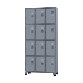 Armário Roupeiro de aço para vestiário,ideal para academias, surpermercados, empresa e para uso geral. Produzido em aço chapa 26 0,45mm de alta qualidade com tratamento anti-ferruginoso, o acabamento em sistema de pintura eletrostática a alta temperatura epóxi, tambem garante maior durabilidade da cor e resistencia a ferrugem. Possui 15 portas com venezianas para ventilação, compartimentos de tamanhos médios independentes sem divisórias internas, que garante que você consiga armazenar itens como bolsas, mochilas e entre outros. O fechamento das portas é através de pitão para cadeado.