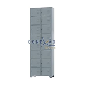 Armário Roupeiro de aço para vestiário,ideal para academias, surpermercados, empresa e para uso geral. Produzido em aço chapa 26 0,45mm de alta qualidade com tratamento anti-ferruginoso, o acabamento em sistema de pintura eletrostática a alta temperatura epóxi, tambem garante maior durabilidade da cor e resistencia a ferrugem. Possui 16 portas com venezianas para ventilação, compartimentos de tamanhos médios independentes sem divisórias internas, que garante que você consiga armazenar itens como bolsas, mochilas e entre outros. O fechamento das portas é através de pitão para cadeado.