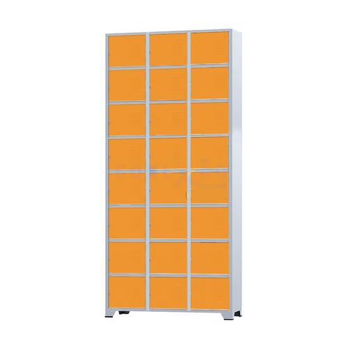 CONEXÃO OFFICEArmário Roupeiro de aço para vestiário,ideal para academias, surpermercados, empresa e para uso geral. Produzido em aço chapa 26 0,45mm de alta qualidade com tratamento anti-ferruginoso, o acabamento em sistema de pintura eletrostática a alta temperatura epóxi, tambem garante maior durabilidade da cor e resistencia a ferrugem. Possui 24 portas com venezianas para ventilação, compartimentos de tamanhos médios independentes sem divisórias internas, que garante que você consiga armazenar itens como bolsas, mochilas e entre outros. O fechamento das portas é através de chave. Características- Quantidade de Portas: 24- Cor: Cinza Padrão / Portas Laranjas- Chapa: 26 / 0,45mm- Medida das Portas/ Vãos: 021Alt x 026Larg- Sistema de Ventilação: Veneziana- Fechamento: chave- Quantidade de cabides por porta: 0- Pés removíveis: Não- Desmontável: Não ( Exceto portas que podem ser trocadas ).- Pintura: Epóxi PóALTURA: 197cmLARGURA: 92cmPROFUNDIDADE: 36cmPESO: 35kgGARANTIA: 3 MesesEspecificação de chapa e acabamento: Roupeiro produzido em chapa de aço tratada com antiferruginoso por fosfatização e pintura epóxi-pó por processo eletrostático.
