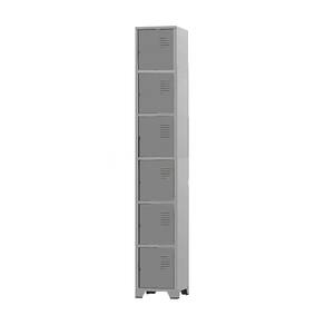 CONEXÃO OFFICEArmário Roupeiro de aço para vestiário,ideal para academias, surpermercados, empresa e para uso geral. Produzido em aço chapa 26 0,45mm de alta qualidade com tratamento anti-ferruginoso, o acabamento em sistema de pintura eletrostática a alta temperatura epóxi, tambem garante maior durabilidade da cor e resistencia a ferrugem. Possui 6 portas com venezianas para ventilação, compartimentos de tamanhos médios independentes sem divisórias internas, que garante que você consiga armazenar itens como bolsas, mochilas e entre outros. O fechamento das portas é através de CHAVE. Características- Quantidade de Portas: 6- Cor: Cinza Padrão- Chapa: 26 / 0,45mm- Medida das Portas/ Vãos: 029Alt x 026Larg- Sistema de Ventilação: Veneziana- Fechamento: CHAVE- Quantidade de cabides por porta: 0- Pés removíveis: Não- Desmontável: Não ( Exceto portas que podem ser trocadas ).- Pintura: Epóxi PóALTURA: 197cmLARGURA: 32cmPROFUNDIDADE: 36cmPESO: 25 kgGARANTIA: 3 MesesEspecificação de chapa e acabamento: Roupeiro produzido em chapa de aço tratada com antiferruginoso por fosfatização e pintura epóxi-pó por processo
