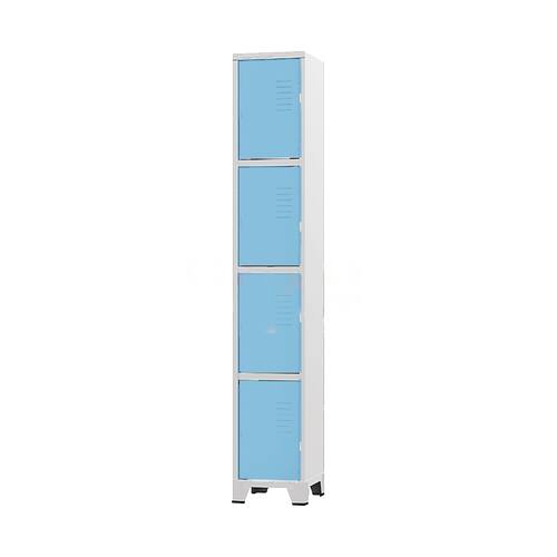 Armário Roupeiro de aço para vestiário,ideal para academias, surpermercados, empresa e para uso geral. Produzido em aço chapa 26 0,45mm de alta qualidade com tratamento anti-ferruginoso, o acabamento em sistema de pintura eletrostática a alta temperatura epóxi, tambem garante maior durabilidade da cor e resistencia a ferrugem. Possui 4 portas com venezianas para ventilação, compartimentos de tamanhos médios independentes sem divisórias internas, que garante que você consiga armazenar itens como bolsas, mochilas e entre outros. O fechamento das portas é através de pitão para cadeado.
