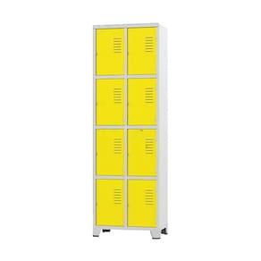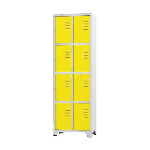 CONEXÃO OFFICEArmário Roupeiro de aço para vestiário,ideal para academias, surpermercados, empresa e para uso geral. Produzido em aço chapa 26 0,45mm de alta qualidade com tratamento anti-ferruginoso, o acabamento em sistema de pintura eletrostática a alta temperatura epóxi, tambem garante maior durabilidade da cor e resistencia a ferrugem. Possui 8 portas com venezianas para ventilação, compartimentos de tamanhos médios independentes sem divisórias internas, que garante que você consiga armazenar itens como bolsas, mochilas e entre outros. O fechamento das portas é através de CHAVE. Características- Quantidade de Portas: 8- Cor: Corpo Cinza / Portas Amarelas- Chapa: 26 / 0,45mm- Medida das Portas/ Vãos: 046Alt x 027Larg- Sistema de Ventilação: Veneziana- Fechamento: CHAVE- Quantidade de cabides por porta: 0- Pés removíveis: Não- Desmontável: Não ( Exceto portas que podem ser trocadas ).- Pintura: Epóxi Pó- Imagens meramente ilustrativas.- As cores podem apresentar variações de tonalidade.ALTURA: 197cmLARGURA: 62cmPROFUNDIDADE: 36cmPESO: 30kgEspecificação de chapa e acabamento: Roupeiro produzido em chapa de aço tratada com antiferruginoso por fosfatização e pintura epóxi-pó por processo eletrostático.
