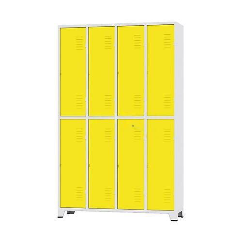 Armário Roupeiro de aço para vestiário,ideal para academias, surpermercados, empresa e para uso geral. Produzido em aço chapa 26 0,45mm de alta qualidade com tratamento anti-ferruginoso, o acabamento em sistema de pintura eletrostática a alta temperatura epóxi, tambem garante maior durabilidade da cor e resistencia a ferrugem. Possui 8 portas com venezianas para ventilação, compartimentos de tamanhos médios independentes sem divisórias internas, que garante que você consiga armazenar itens como bolsas, mochilas e entre outros. O fechamento das portas é através de pitão para cadeado.
