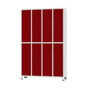 CONEXÃO OFFICEArmário Roupeiro de aço para vestiário,ideal para academias, surpermercados, empresa e para uso geral. Produzido em aço chapa 26 0,45mm de alta qualidade com tratamento anti-ferruginoso, o acabamento em sistema de pintura eletrostática a alta temperatura epóxi, tambem garante maior durabilidade da cor e resistencia a ferrugem. Possui 8 portas com venezianas para ventilação, compartimentos de tamanhos médios independentes com 1 prateleira, que garante que você consiga armazenar itens como bolsas, mochilas e entre outros. O fechamento das portas é através de CHAVE. Características:- Quantidade de Portas: 08- Cor: Cinza Padrão- Chapa: 26 / 0,45mm- Medida das Portas/ Vãos: 092Alt x 027Larg- Sistema de Ventilação: Veneziana- Fechamento: CHAVE- Quantidade de cabides por porta: 2- Prateleira: 1 - Pés removíveis: Não- Desmontável: Não ( Exceto portas que podem ser trocadas ).- Pintura: Epóxi PóALTURA: 197cmLARGURA: 122cmPROFUNDIDADE: 036cmPESO: 50kgGARANTIA: 1 MesesEspecificação de chapa e acabamento: Roupeiro produzido em chapa de aço tratada com antiferruginoso por fosfatização e pintura epóxi-pó por processo eletrostático.