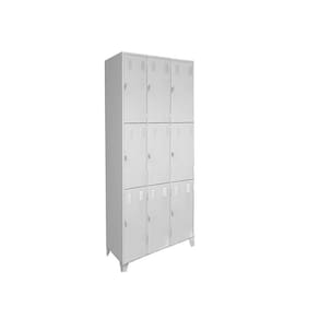 Armário Roupeiro de aço para vestiário, produzido em aço chapa 26 0,45mm, possui 3 portas com venezianas para ventilação, compartimento de tamanho grandes independentes sem divisórias internas, fechamento das portas através de pitão para cadeado.