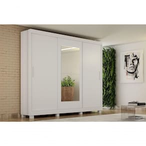 Armario Roupeiro Florença 3 Portas 4 Gavetas C/kit 2 Espelhos E Com Pes Chf Branco Armario Roupeiro Florença 3 Portas 4 Gavetas C/Kit 2 espelhor e Com Pes CHF Dimensões do Armário: Altura: 200 cm Largura: 202 cm Profundidade: 52 cm - Estrutura em MDP/MDF; - Corrediças metálicas; - Pés - Acabamento com pintura UV ; Produto desmontado (necessita de montagem): Sim Montagem: Não Oferecemos de montagem Recomendações de limpeza e manutenção: Utilizar pano macio, seco ou ligeiramente umedecido com água. Atenção: Pode existir alguma diferença de tonalidade entre a foto e o produto, devido ao tratamento de imagens e à calibração de cores do monitor. Não oferecemos de montagem, mas todos os nossos móveis possuem manual. Garantia: 90 Dias
