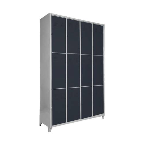 CONEXAO OFFICEArmário Roupeiro de aço para vestiário, produzido em aço chapa 26 0,45mm, possui 12 portas com venezianas para ventilação, compartimentos de tamanhos medios independentes sem divisórias internas, fechamento das portas através de CHAVECaracterísticas- Quantidade de Portas: 12- Cor: Preto- Chapa: 26 / 0,45mm- Medida das Portas/ Vãos: 046Alt x 027Larg- Sistema de Ventilação: Veneziana- Fechamento: CHAVE- Quantidade de cabides por porta: 0- Pés removíveis: Não- Desmontável: Não ( Exceto portas que podem ser trocadas ).- Pintura: Epóxi Pó- Imagens meramente ilustrativas.- As cores podem apresentar variações de tonalidade.ALTURA: 198cmLARGURA: 122cmPROFUNDIDADE: 36cmPESO: 50kgEspecificação de chapa e acabamento: Roupeiro produzido em chapa de aço tratada com antiferruginoso por fosfatização e pintura epóxi-pó por processo eletrostático.