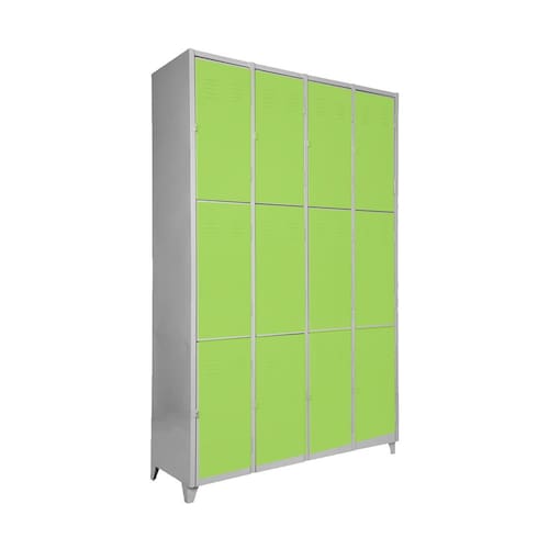 CONEXAO OFFICEArmário Roupeiro de aço para vestiário, produzido em aço chapa 26 0,45mm, possui 12 portas com venezianas para ventilação, compartimentos de tamanhos medios independentes sem divisórias internas, fechamento das portas através de CHAVE.Características- Quantidade de Portas: 12- Cor: Verde- Chapa: 26 / 0,45mm- Medida das Portas/ Vãos: 046Alt x 027Larg- Sistema de Ventilação: Veneziana- Fechamento: CHAVE- Quantidade de cabides por porta: 0- Pés removíveis: Não- Desmontável: Não ( Exceto portas que podem ser trocadas ).- Pintura: Epóxi Pó- Imagens meramente ilustrativas.- As cores podem apresentar variações de tonalidade.ALTURA: 198cmLARGURA: 122cmPROFUNDIDADE: 36cmPESO: 50kgEspecificação de chapa e acabamento: Roupeiro produzido em chapa de aço tratada com antiferruginoso por fosfatização e pintura epóxi-pó por processo eletrostático.