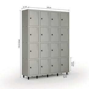 Dimensões: 193 cm alt. x 140 cm larg. x 41 cm prof. Ambiente Principal: Comércio codigo_ean: 7900288268341 Cor: Cinza Cor da Porta: Cinza Cor do Produto: Cinza Formato do Armário: Quadrado Informações Complementares: Cadeados não inclusos Itens Inclusos: Pés plásticos niveladores, pitão plástico para cadeado Manual de Montagem e Instalação: https://product-hub-prd.madeiramadeira.com.br/144437586/documents/fc31e1ba-e727-4be7-ba73-f404954b673e3281252647517609828913073.pdf Marca: Isma Material Principal: Aço Necessita Montagem: Sim Origem do Produto: Nacional Peso Suportado por Compartimento (Kg): 10 kg Porta com chave: Não Quantidade de Colunas do Armário: 4 Quantidade de Linhas do Armário: 4 Suporta Até (kg): 160 kg Tipo de Armário Multiuso: Locker Marca: Não Informado