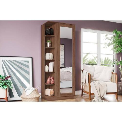Armário Sapateira Quarto Duetto c/ 1 Porta c/ Espelho Castanho - Henn