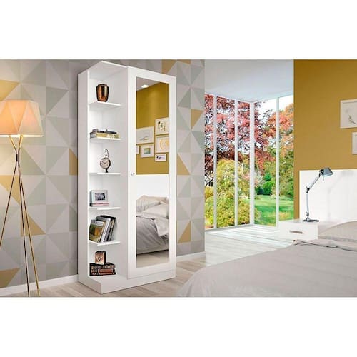 Armário Sapateira Quarto Duetto c/ 1 Porta c/ Espelho Branco - Henn