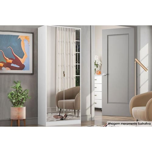 Armário Sapateira Quarto Grife c/ 2 Portas c/ Espelho e 1 Gaveta Branco - Demóbile