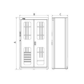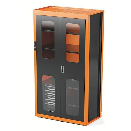 Estrutura em chapas de aço conformadas.Espessuras das chapas: 0,9 mm.Pintura eletrostática a pó.Duas portas com abertura de 100 5 prateleiras móveis possibilitando diferente configurações de montagem.Capacidade de carga máxima repartida: 400 kg Capacidade de carga distribuída de cada prateleira: 60 kg 6 Pés com regulagem de altura para melhor nivelamento do armário no piso. Portas com trancas eletrônicas.Abertura dos armários por meio eletrônico através do cartão de acesso de 13.56 MHz de frequência. Conector Painel C14 para ligação na tomada elétrica 10A 250 VAC. Conector painel C13 para interligação com outros armários 10A 250 VAC. Cabo de alimentação em cobre 3x0,75 mm comp. 3000 mm Isolação em PVC preto 65 graus 250VAC 10A com plug, utilizado para ligar os organizadores na rede elétrica. Cabo de alimentação em cobre 3x0,75 mm comp. 600 mm Isolação em PVC preto 65 graus 250V VAC 10A C13 - C14 com plug 90 graus supply AC, utilizado para interligar os organizadores.Contato para projetos especiais: modular.gar@tramontina.com