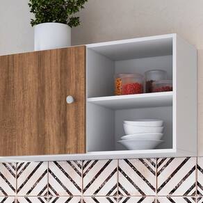 Armário Suspenso Compacto, com uma organização inteligente e estilosa. Facilite o seu dia a dia em qualquer espaço em sua cozinha, lavanderia, quarto e em seu escritório. Feito em MDP de 15mm. Possui 01 Porta com dobradiças metálicas, com amplo espaço interno e 02 Nichos externos, ideal para decoração e praticidade. Imagine em sua cozinha, podendo acomodar temperos e louças. Na lavanderia, os produtos de limpeza ficam bem guardados e ao alcance. No quarto, você ganha um espaço extra para acessórios, e em seu escritório, é o lugar perfeito para organizar materiais de trabalho ou itens de decoração. Funcionalidade, e toque de Personalidade tudo em um só móvel. Este móvel chegará em sua casa separado em 01 Volume.
