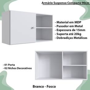 Armário Suspenso Compacto, com uma organização inteligente e estilosa. Facilite o seu dia a dia em qualquer espaço em sua cozinha, lavanderia, quarto e em seu escritório. Feito em MDP de 15mm. Possui 01 Porta com dobradiças metálicas, com amplo espaço interno e 02 Nichos externos, ideal para decoração e praticidade. Imagine em sua cozinha, podendo acomodar temperos e louças. Na lavanderia, os produtos de limpeza ficam bem guardados e ao alcance. No quarto, você ganha um espaço extra para acessórios, e em seu escritório, é o lugar perfeito para organizar materiais de trabalho ou itens de decoração. Funcionalidade, e toque de Personalidade tudo em um só móvel. Este móvel chegará em sua casa separado em 01 Volume.