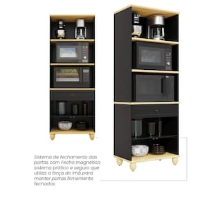 A Torre Quente 3P1G é ideal para aqueles que buscam otimizar o espaço de cozinha sem sacrificar o estilo e a sustentabilidade. Elaborada com tampos e bases em madeira maciça de 2,5cm de mata reflorestada, destacando nosso compromisso com práticas ambientais responsáveis. Os pés torneados em madeira maciça não só reforçam a estabilidade e durabilidade da peça, mas também asão compostos com regulagens que adaptam melhor o módulo ao chão. Os puxadores, com sua textura de ouro velho, enriquecem o visual da torre quente, complementando perfeitamente o design provençal. A pintura atóxica e o acabamento em laca garantem um aspecto estético refinado e uma durabilidade prolongada. Acabamento da Prateleira: Pintura UV Escala de Brilho da Prateleira: Semi-Fosco Acabamento da Gaveta: Pintura UV Escala de Brilho da Gaveta: Semi-Fosco Material do Puxador da Gaveta: Metal Acabamento da Porta: Pintura UV Escala de Brilho da Porta: Semi-Fosco Material do Puxador da Porta: Metal Acabamento dos Pés: Verniz Acompanha Rodapé Decorativo: Não Acompanha Tampo: Sim Altura dos Pés: 10,5 cm Altura Máxima dos Pés: 10.5000 Ambiente Principal: Cozinha Balcão Suporta Pia: Não codigo_ean: 7900288252982 Complexidade da Montagem: Média: pode ser montado por mais de uma pessoa e/ou necessite de maior conhecimento para montagem Cor: Preto Cor do Produto: Preto Escala de Brilho: Semi-Fosco Gaveta com Chave: Não Itens Inclusos: 1 Torre Quente, Kit Ferragens e Manual de Montagem Linha ou Coleção: Joy Manual de Montagem e Instalação: https://product-hub-prd.madeiramadeira.com.br/287581878/documents/e87c7e00-cf78-4086-84d4-a0fa6d3f7d82bc14c05131179b6b1758054605.pdf Marca: Móveis Serpil Material da Corrediça: Metálica Material da Dobradiça/Corrediça da Porta: Metálica Material da Gaveta: MDF Material da Porta: MDP Material da Prateleira: MDP Material dos Pés: Pinus modular: Não Necessita Montagem: Sim Origem do Produto: Nacional Pés Reguláveis: Não Peso: 65 kg Peso Máximo por Gaveta: 7 kg Peso Máximo por Prateleira: 30 kg Possui Espelho: Não Possui Possui Pés: 04 Possui Portas: Sim Possui Prateleiras: Sim Possui Rodízio: Não Produto Montado: Sim Recomendações de Uso, Manutenção e Limpeza: Use um pano macio levemente umedecido. Não utilizar produtos abrasivos. Sapatas Niveladoras: Sim Sistema de Montagem: Parafusos, cavilhas, minifix Suporta Até (kg): 2,5 kg Tipo de Corrediça da Gaveta: Metálica Telescópica Tipo de Dobradiça/Corrediça da Porta: Simples Tipo de Puxador da Gaveta: Externo Tipo de Puxador da Porta: Externo
