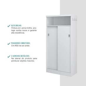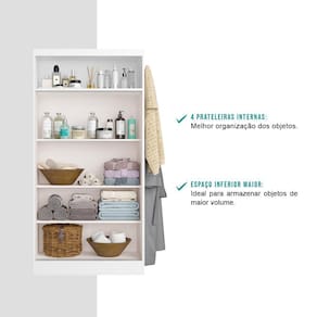 O Armário de Banheiro Multiuso Carraro é a peça ideal para ser utilizada em diferentes cômodos da casa, ajudando a manter todos os objetos em ordem e assim facilitando as tarefas do dia a dia. É uma solução indispensável para quem precisa de mais espaço e organização para o ambiente, pois conta com diversas prateleiras internas, nicho superior, ganchos laterais e portas de correr.