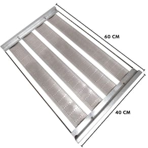 A Assadeira para pão francês ou salgado INNAL é feita em alumínio e possui 4 tiras com capacidade para até 20 pães de 50 gramas. O fundo da assadeira é feito de tela de alumínio perfurada, facilitando o trabalho e a limpeza do produto.