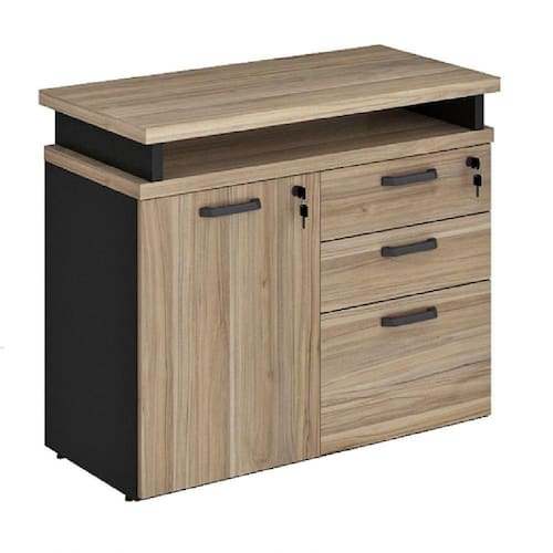Armário Baixo Web30 01 Porta, 02 Gavetas + 01 Gavetão para Pastas na cor Calvi / Preto