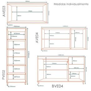Materiais: Estrutura 100% MDP (chapa de 15mm), dobradiças Metálicas e puxadores em alumínio.