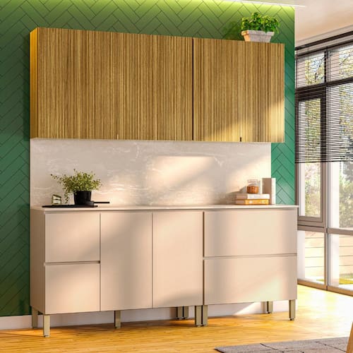 Com um design moderno e otimizado para organização, esta cozinha é perfeita para quem busca praticidade sem abrir mão da elegância. Ela vem equipada com:
