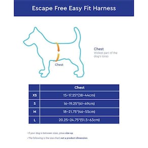 - Arneses Escape Free Easy Fit para cães pequenos – O peitoral escapar é feito para cães de raças pequenas. Isso significa que nosso maior tamanho caberá em cães de até 15,8 kg. Para utilizar totalmente a funcionalidade do arnês Gooby e o ajuste, recomendamos medir a maior parte do peito do cão.