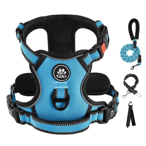 - Conjunto de arreios perfeito: nosso conjunto de arnês para cães inclui 1 coleira profissional para cães, 1 cinto de segurança retrátil e 1 alça de armazenamento (fácil de guardar o peitoral e a coleira). A combinação cuidadosamente considerada pode atender a várias necessidades, e cada acessório cuidadosamente selecionado protege a segurança do cão