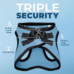 - Segurança tripla: nosso arnês oferece três camadas de proteção com um fecho de fecho aderente seguro, uma fivela resistente e anéis D duplos, garantindo a segurança do seu animal de estimação em todos os momentos