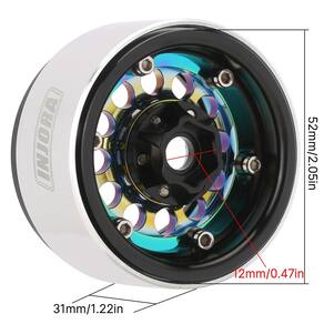 Especificações: Número da peça: W1957 Material: latão, alumínio Quantidade: 4 unidades Deslocamento: -10 mm (-0,39 pol.) Diâmetro externo: 52 mm (2,05 pol.) Espessura: 31 mm (1,22 pol.) Hex de tração: 12 mm (0,47 pol) Peso: 153 g/unidades (5,40 onças) Lista de pacotes: 4 aros de roda de 1,9" para carro RC - Feito de material misto de latão e alumínio, alta resistência à corrosão. - A composição exclusiva do cubo da roda garante um melhor desempenho de escalada. - 153 g/unidade de peso superpesado, deslocamento negativo de -10 mm, ampliam o espaçamento entre rodas e proporcionam melhor estabilidade. - Preto, cinza, prata, arco-íris anodizado, mais opções para melhorar a aparência geral do carro RC. - Perfeito para peça de atualização 1/10 RC Crawler SCX10 TRX4 VS4-10 Gen8.