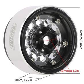Especificações: Número da peça: W1957 Material: latão, alumínio Quantidade: 4 unidades Deslocamento: -10 mm (-0,39 pol.) Diâmetro externo: 52 mm (2,05 pol.) Espessura: 31 mm (1,22 pol.) Hex de tração: 12 mm (0,47 pol) Peso: 153 g/unidades (5,40 onças) Lista de pacotes: 4 aros de roda de 1,9" para carro RC - Feito de material misto de latão e alumínio, alta resistência à corrosão. - A composição exclusiva do cubo da roda garante um melhor desempenho de escalada. - 153 g/unidade de peso superpesado, deslocamento negativo de -10 mm, ampliam o espaçamento entre rodas e proporcionam melhor estabilidade. - Preto, cinza, prata, arco-íris anodizado, mais opções para melhorar a aparência geral do carro RC. - Perfeito para peça de atualização 1/10 RC Crawler SCX10 TRX4 VS4-10 Gen8.