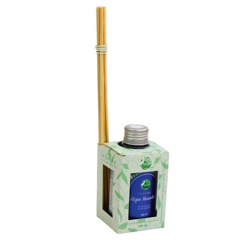 Aromatizador de Ambiente 200ml Algas Marinhas Aromatizador de ambiente 200ml algas marinhas. Contém fragrância de algas marinhas. Possui 200ml e acompanha 4 varetas de madeira reflorestada.\nMarca: PANTANAL A Tipo de material : Álcool, Fragrância Cores ou Estampa : Azul Dimensões do Produto : 11,5 X 5,5 X 5,5 CM Peso Bruto (Gramas) : 0.200 Marca: Não Informado