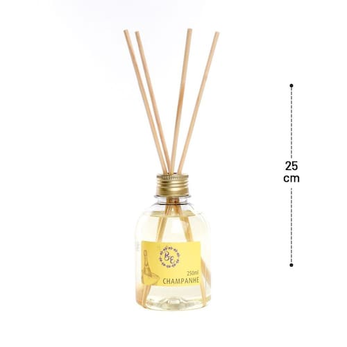 Aromatizador de Ambiente 250ml Champanhe Aromatizador de ambiente 250ml Champanhe. Contém fragrância de Champanhe. Possui 250ml e acompanha 4 varetas de madeira reflorestada.