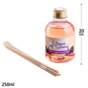 Aromatizador de Ambiente 250ml Cravo e Canela Aromatizador de ambiente 250ml Cravo e Canela. Contém fragrância de Cravo e Canela. Possui 250ml e acompanha 4 varetas de madeira reflorestada.