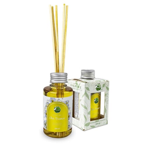 Contém: 01 - Aromatizador Difusor de Ambientes, Aroma de Chá Branco, 200ml, Linha Inspire Pantanal Aromas