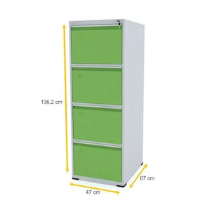 Muitos documentos para organizar? Nossa sugestão: invista em peças modernas e de qualidade, como este arquivo de aço da Pandin. Sua estação de trabalho vai ficar mais bonita e você vai ganhar tempo com este arquivo de aço com quatro gavetas, nas cores cinza e verde. A decoração de sua sala de trabalho pede outra cor? Nós temos! Este modelo vem em diversas opções de cores, que podem compor escritórios dos mais sóbrios aos mais criativos. Organize sua papelada, suas pastas, materiais de trabalho e documentos em geral com esse arquivo, um dos mais vendidos por nós. Leve este arquivo para seu home-office ou sua empresa e facilite suas ações diárias! Esta é mais uma peça da linha Aço da Pandin, que oferece móveis práticos, duráveis, muito resistentes e de excelente custo-benefício. Você pode combinar este arquivo com outros móveis da linha, como nossos armários, estantes e roupeiros de aço e criar um ambiente sob medida, personalizado de acordo com suas necessidades.