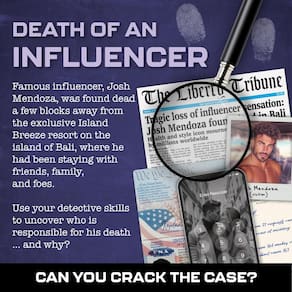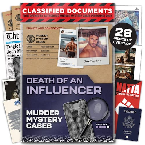 Arquivo de caso não resolvido do jogo Murder Mystery: morte de um influenciador