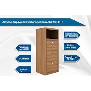 Arquivo de Escritório ME4118 c/ 3 Gavetas e 1 Nicho Branco - Tecno Mobili