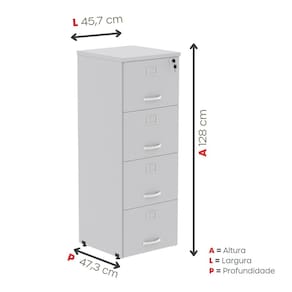 Suas 4 gavetas espaçosas oferecem excelente capacidade para armazenar e organizar documentos, pastas e materiais de uso frequente, mantendo tudo sempre acessível e bem distribuído. O design funcional proporciona facilidade de uso, enquanto a robustez do móvel assegura longa vida útil mesmo em rotinas intensas.