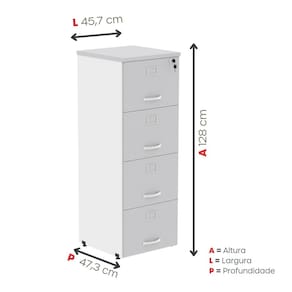 Suas 4 gavetas espaçosas oferecem excelente capacidade para armazenar e organizar documentos, pastas e materiais de uso frequente, mantendo tudo sempre acessível e bem distribuído. O design funcional proporciona facilidade de uso, enquanto a robustez do móvel assegura longa vida útil mesmo em rotinas intensas.