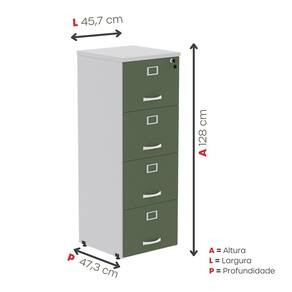 Suas 4 gavetas espaçosas oferecem excelente capacidade para armazenar e organizar documentos, pastas e materiais de uso frequente, mantendo tudo sempre acessível e bem distribuído. O design funcional proporciona facilidade de uso, enquanto a robustez do móvel assegura longa vida útil mesmo em rotinas intensas.