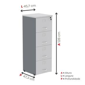 Suas 4 gavetas espaçosas oferecem excelente capacidade para armazenar e organizar documentos, pastas e materiais de uso frequente, mantendo tudo sempre acessível e bem distribuído. O design funcional proporciona facilidade de uso, enquanto a robustez do móvel assegura longa vida útil mesmo em rotinas intensas.