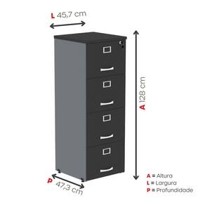 Suas 4 gavetas espaçosas oferecem excelente capacidade para armazenar e organizar documentos, pastas e materiais de uso frequente, mantendo tudo sempre acessível e bem distribuído. O design funcional proporciona facilidade de uso, enquanto a robustez do móvel assegura longa vida útil mesmo em rotinas intensas.