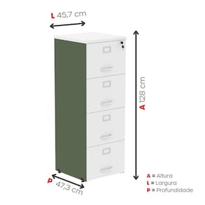 Suas 4 gavetas espaçosas oferecem excelente capacidade para armazenar e organizar documentos, pastas e materiais de uso frequente, mantendo tudo sempre acessível e bem distribuído. O design funcional proporciona facilidade de uso, enquanto a robustez do móvel assegura longa vida útil mesmo em rotinas intensas.